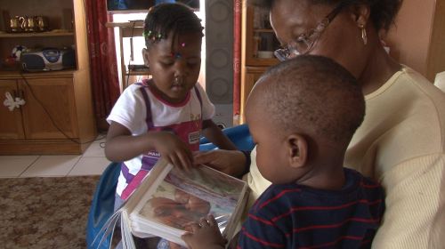 Leago has just turned one a day or two before filming. He has woken up, finding that mom is out. He is sitting with granny, crying. His uncle, Rodney, and cousin, Naledi, are visiting. Uncle tries to calm him and granny calls Naledi to show Leago the photo album containing images of him from his birth, a year ago. Leago stops crying and looks at the photographs. Mom walks in from a shopping trip. She has bought a small camping chair and is encouraging Leago to come and sit in it. He is unsure, tries it for a few moments and then climbs out and crawls away, before returning and crawling to the front door where he stops at the open gate. Naledi joins him there and plays with him before they both re-enter the house.