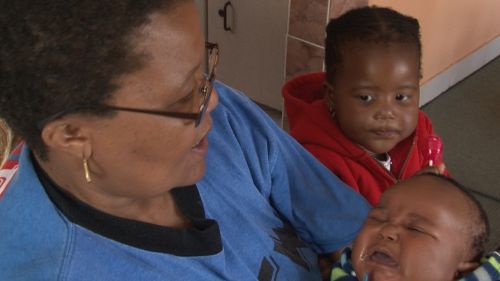 Cont. from clip 02: Mom’s brother, Rodney, and his daughter, Naledi arrive. Mom is still trying to soothe Leago and get him to sleep. She is vocal in her frustration “I don’t want him any more”, “Mama, take him”. Naledi, Leago’s cousin, watches the camera while mom and granny encourage her to pay attention to Leago and to hold him.